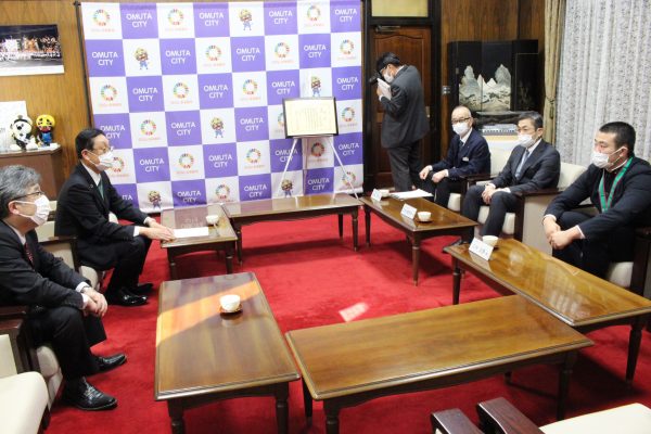 4月12日(水)関 好孝市長を訪問し、第45回全国高等学校柔道選手権大会の入賞報告会を行いました。