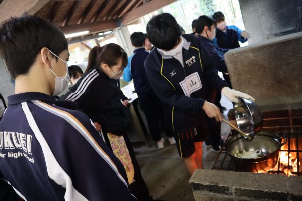 野外調理ではカレーライスを作りました。高校に入学して初めての調理実習でしたが、班で役割分担を行い協力して美味しいカレーを完成させることができました。