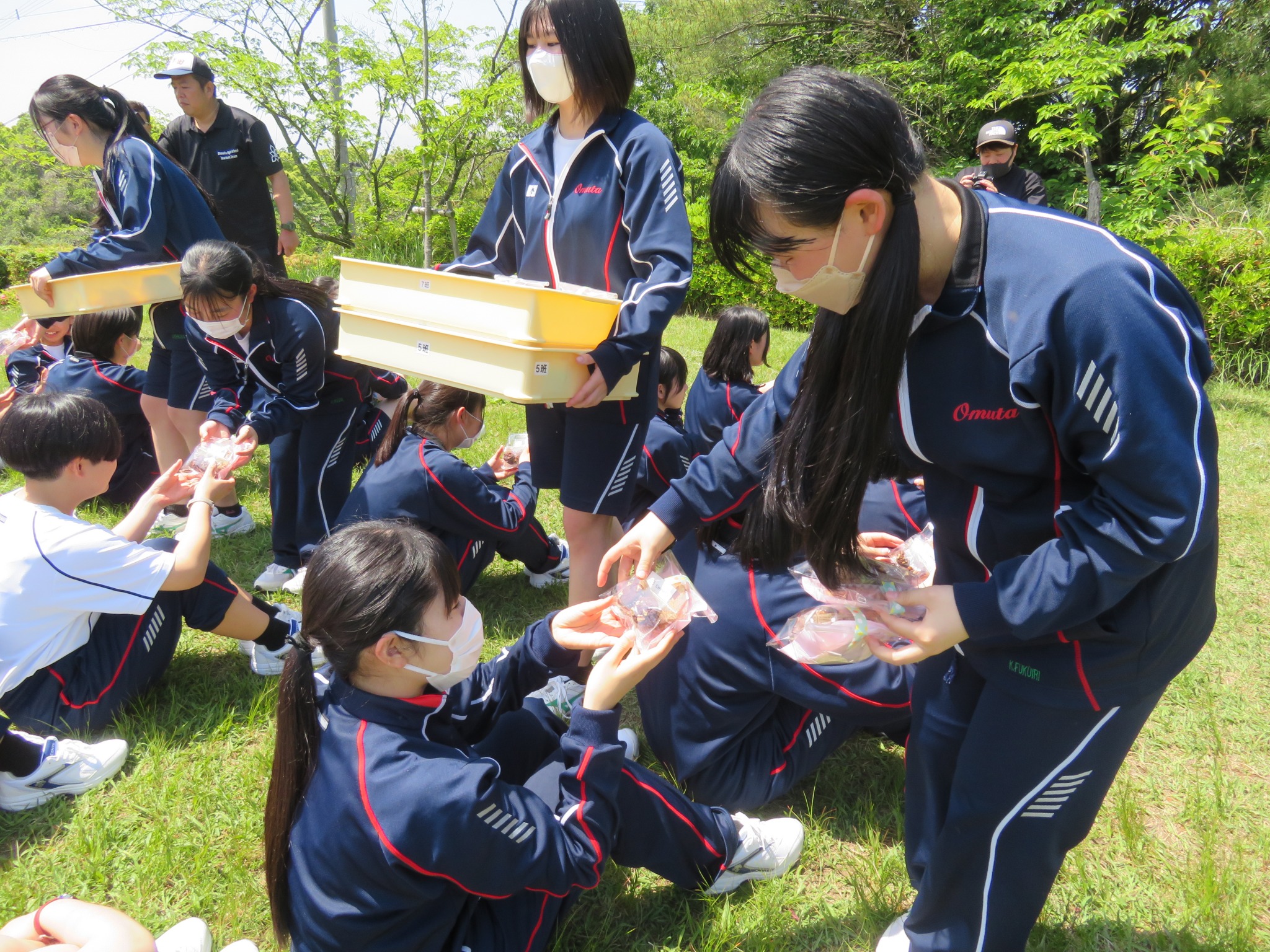 調理科では5月2日(火)、新入生歓迎遠足で甘木公園へ行きました。晴天に恵まれ、到着後は学年対抗長縄跳び大会で盛り上がりました。各学年とも声を掛けながら練習を行い、本戦ではチームワークと作戦で調理科2年生が優勝しました。その後は調理科3年生が作った「welcome sweets」を配り、これから一緒に頑張っていきましょうと新入生にエールを送りました。昼食後はスポーツや交流の時間を楽しみ、帰路に就きました。調理科の親睦も深まり、先輩・後輩の繋がりを作るきっかけにもなったと思います。