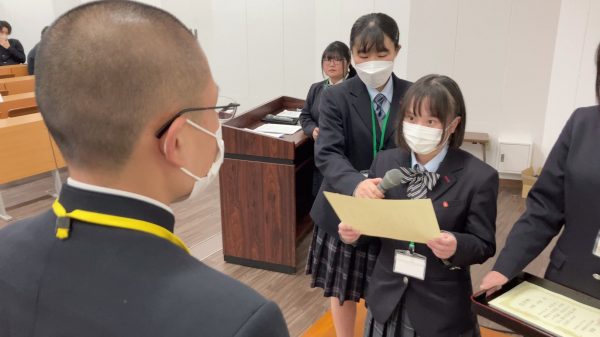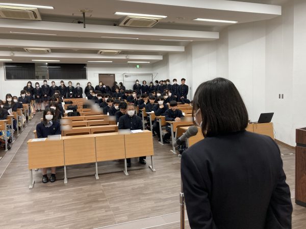 本日で業務を終える3年生の9代目45名から、2年生の系列選択者10代目51名への業務を引き継ぐための大切なセレモニーです。