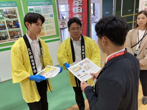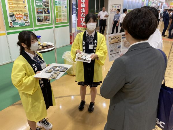 開会直後から多くの来場者に恵まれ、多くのバイヤー様とお話しすることができました。私達4名の高校生以外は、すべて社会人を相手にした「B to B」のビジネスマッチングとなります。