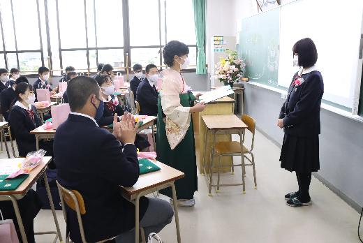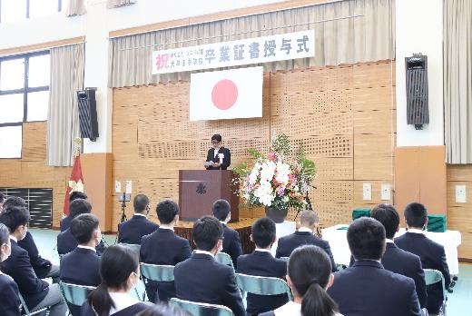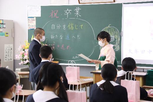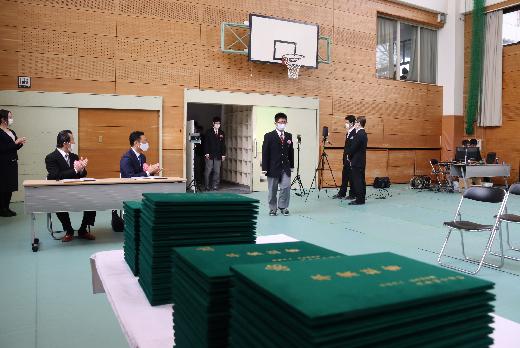 3月7日(日)大牟田中学校卒業証書授与式が挙行されました。新型コロナウイルス感染防止のため、式会場は卒業生の生徒のみでした。会場に複数台のカメラを設置し、保護者の方は控室でライブ配信をご覧いただく形をとりました。