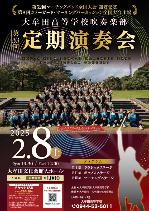 吹奏楽部の第33回定期演奏会を、大牟田文化会館大ホールにて開催します。