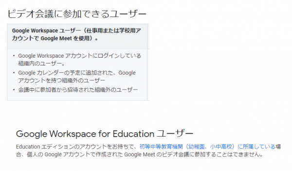 ですが、GoogleMeetが繋がりません...ちゃんと調べてみれば書かれていました。申し訳ありませんでした。