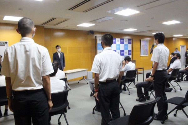 7月12日(月)関 好孝市長を訪問、令和3年度全国高等学校総合体育大会(インターハイ)出場報告を行いました。