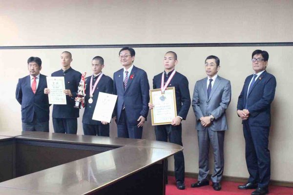 10月18日(月)関 好孝市長を訪問し、令和3年度全国高等学校総合体育大会(インターハイ)の入賞報告会を行いました。