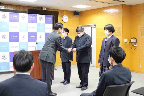 熊谷君(柔道部)は関市長にいい報告ができるように全国大会優勝を目標に頑張ってきます。と抱負を述べていました。ご声援の程宜しくお願い致します。
