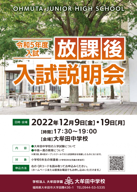 HOME > お知らせ > 大牟田中学校 「放課後入試説明会」のお知らせ