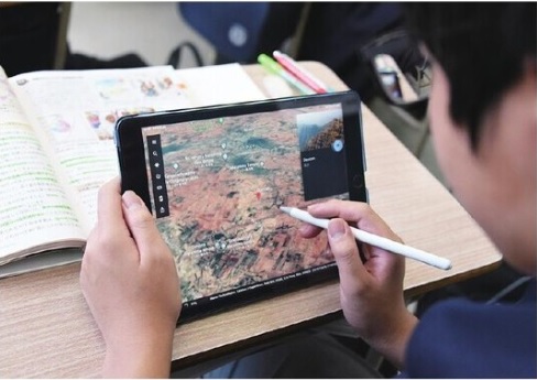 地理・歴史の基礎知識を踏まえたうえで、グローバル化が進む世界の政治や経済の動向についても主体的に学べるようICT機器を活用しながら授業を行います。