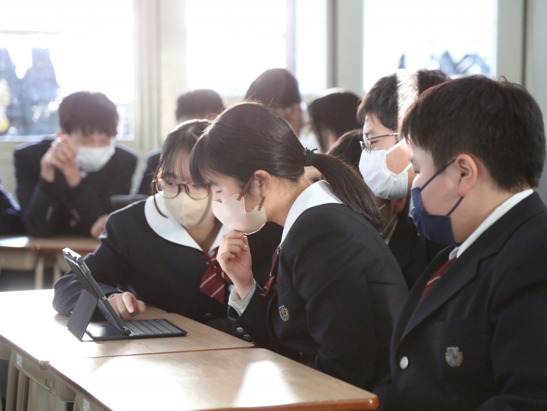 教科書に沿った学習の他、新聞やニュースなど身近にある“生きた教材”を利用しながら、社会情勢に対して目を向けることにも力を入れています。