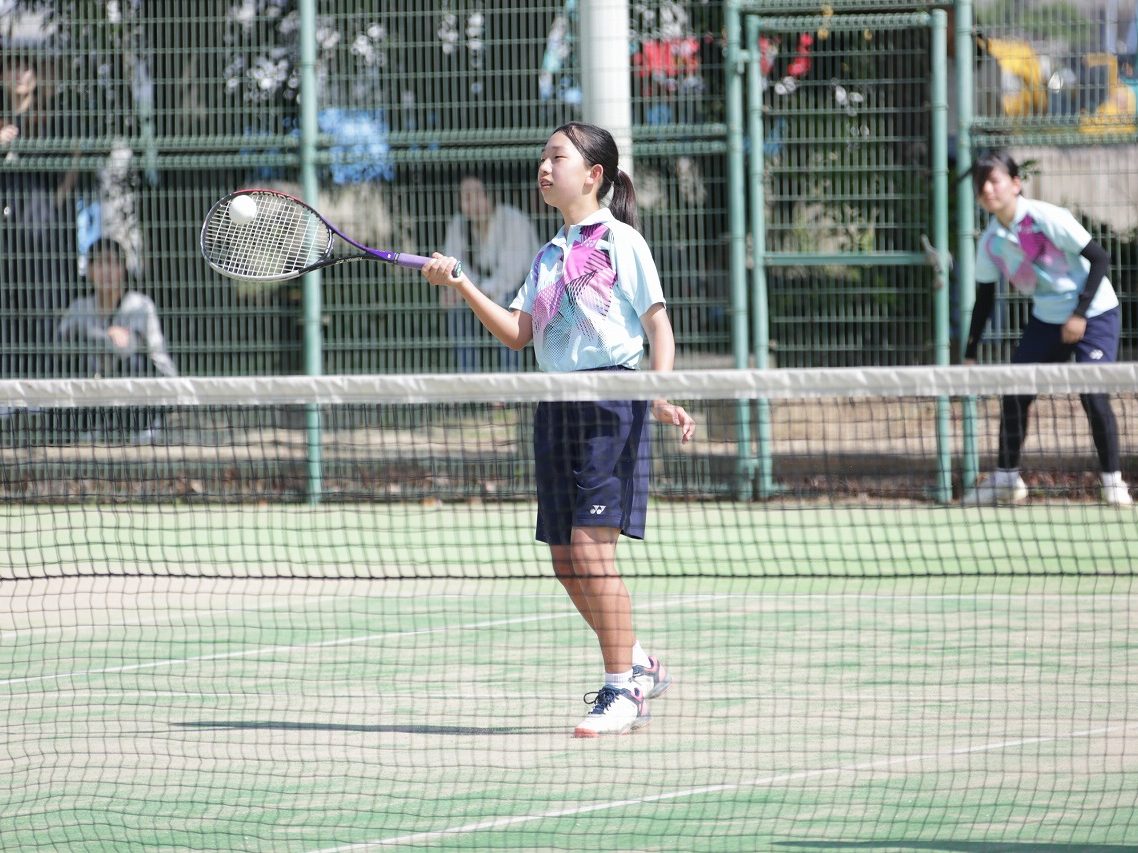 ソフトテニスはペアで戦う競技。励まし合い、助け合いながらの練習で、技術と思いやりの心が身につきます。みんな仲良く明るい部活です。